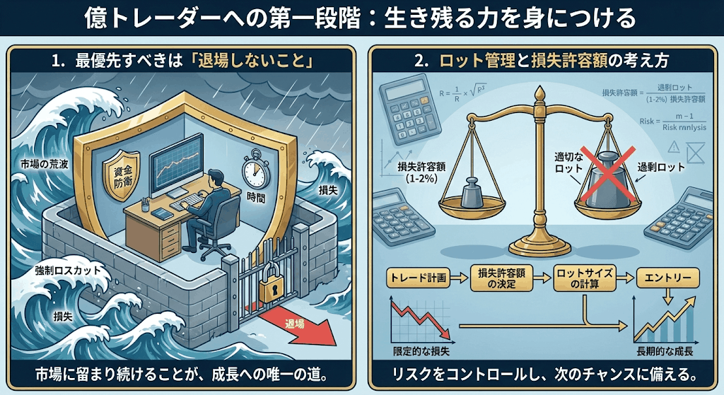 億トレーダーを目指すうえで、最初に身につけるべき能力は「勝つ力」ではなく「負けを限定する力」です。