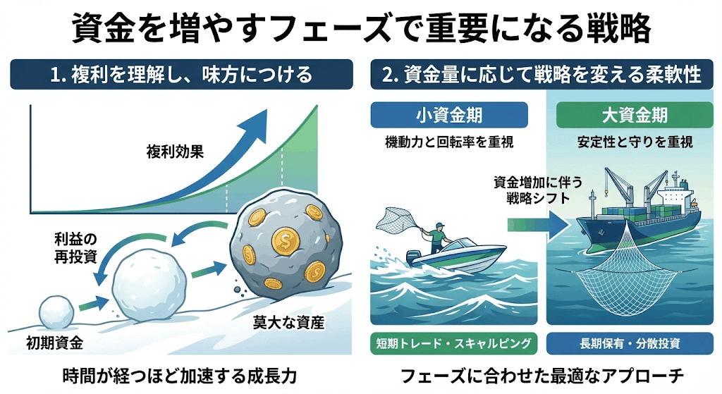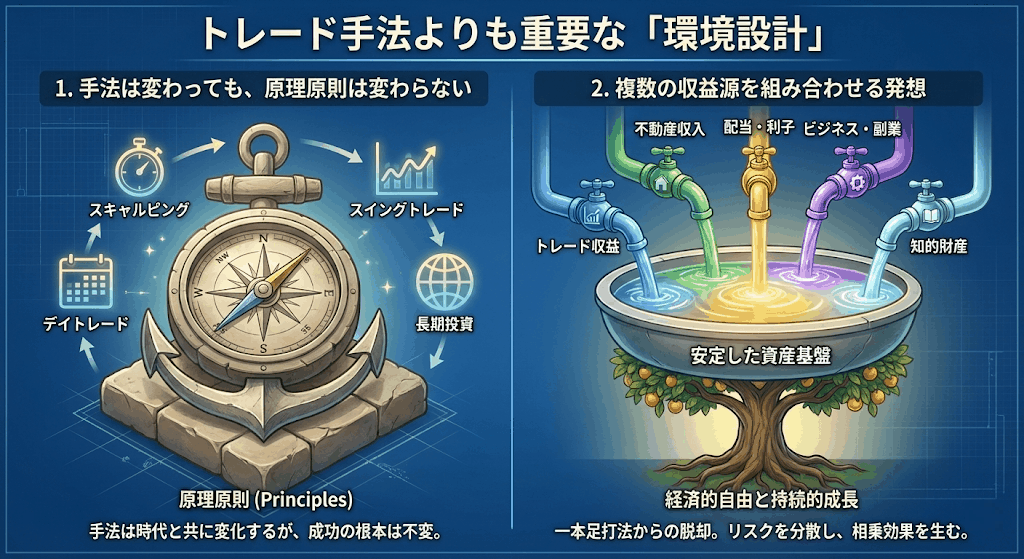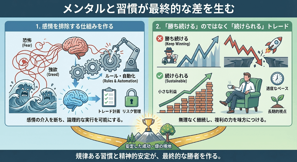 退場しないリスク管理、複利を活かす資金戦略、環境に応じて変化できる柔軟性、そして感情を制御する仕組み。