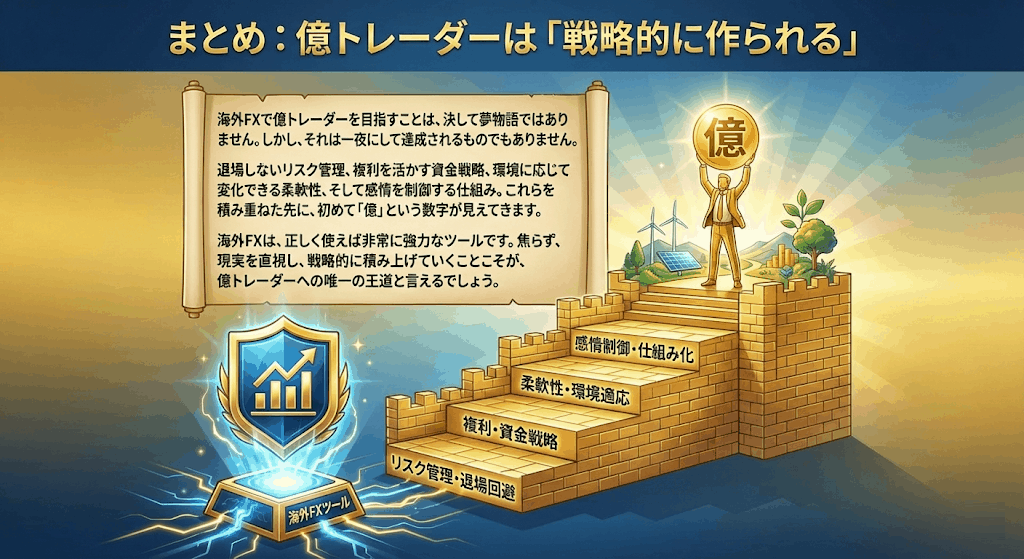 焦らず、現実を直視し、戦略的に積み上げていくことこそが、億トレーダーへの唯一の王道と言えるでしょう。